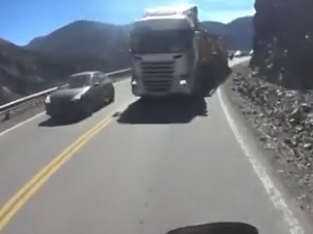 El video da escalofríos, aunque afortunadamente no pasó nada. Y fue grabado por un motociclista que conducía por la alta montaña cuando de repente se encuentra de frente a un camión en contramano.