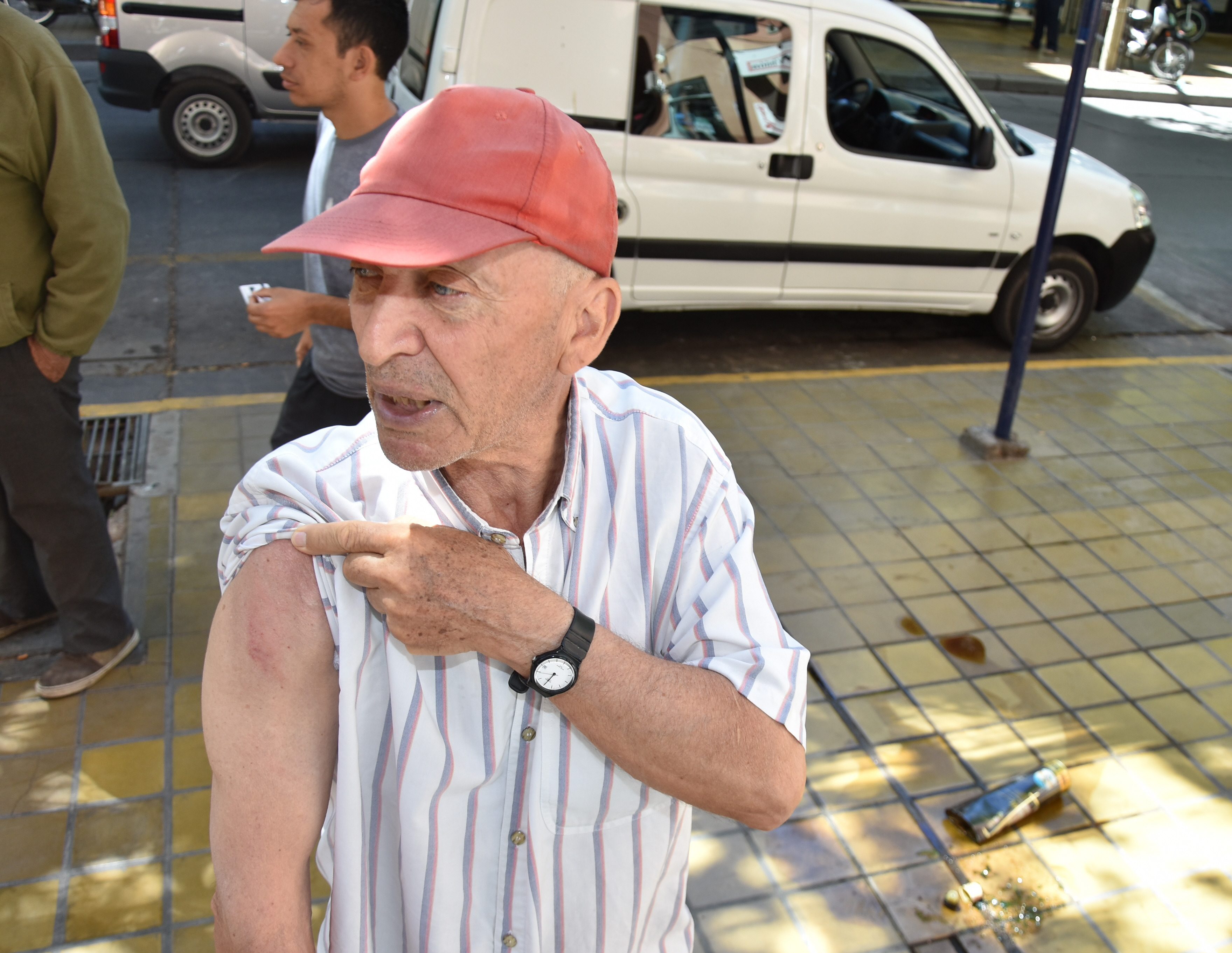 Lo que parecía iba a ser una jornada tranquila terminó siendo un momento de susto y dolor para Guillermo Flores. El hombre, de 70 años y médico retirado, fue herido en un brazo con una botella de fernet que arrojaron desde lo alto del edificio Cinema, de calle Mendoza entre Santa Fe y Mitre. El hecho provocó conmoción en la gente que pasaba en ese momento por el lugar, ya que podría haber sido una tragedia.