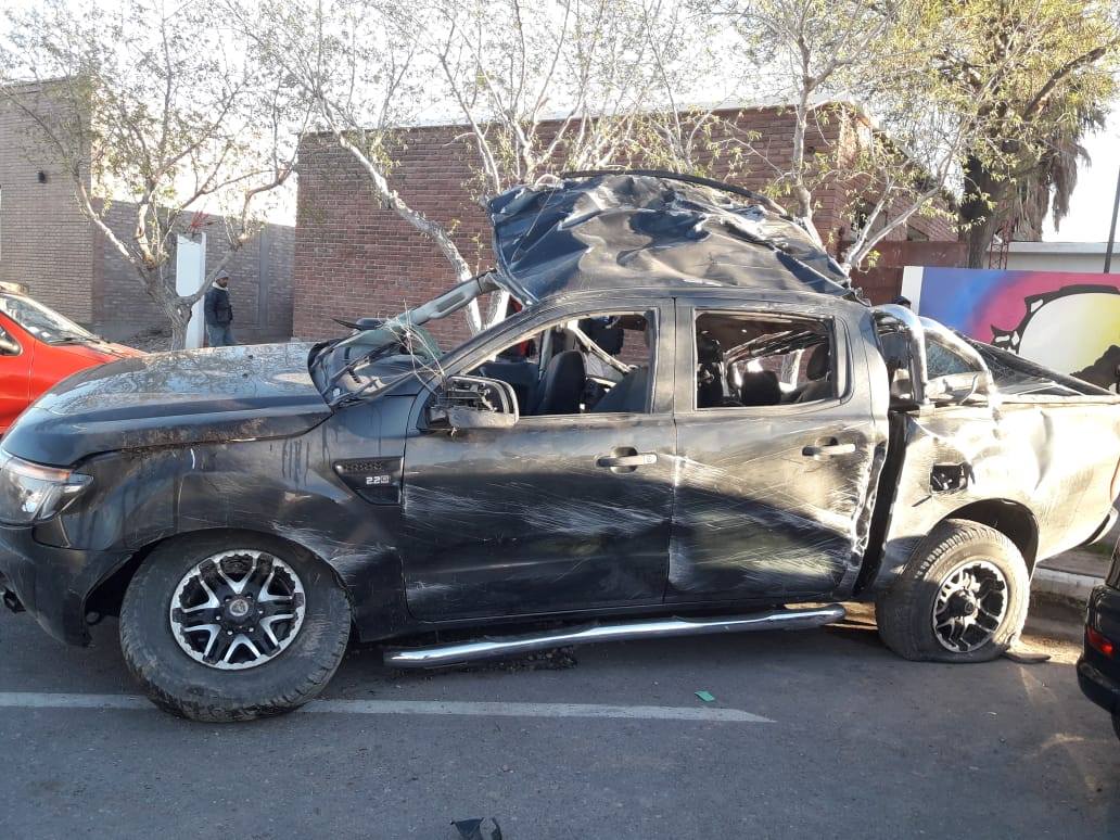 El trágico siniestro ocurrió antes de las 5 de la mañana en calles Divisoria y Santa Elena, en el departamento de Angaco, cuando el conductor de la Ford Ranger perdió el control.