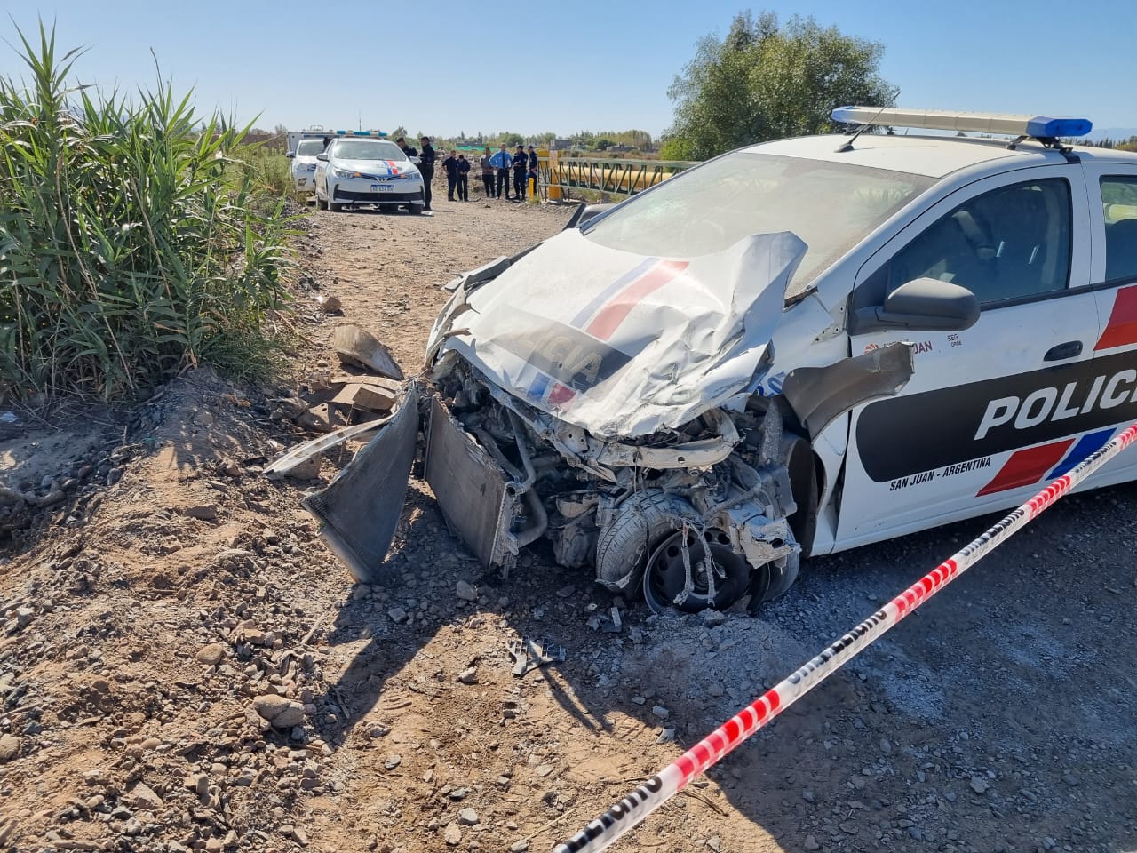 Usuna volvió a acelerar pero a unos 350 metros, aparentemente embistió un monticulo de tierra y escombros, perdiendo el control del rodado y sufriendo heridas leves. Mientras que los dos policías que iban en el patrullero que impactó contra el guardrail debieroon ser hospitalizados.