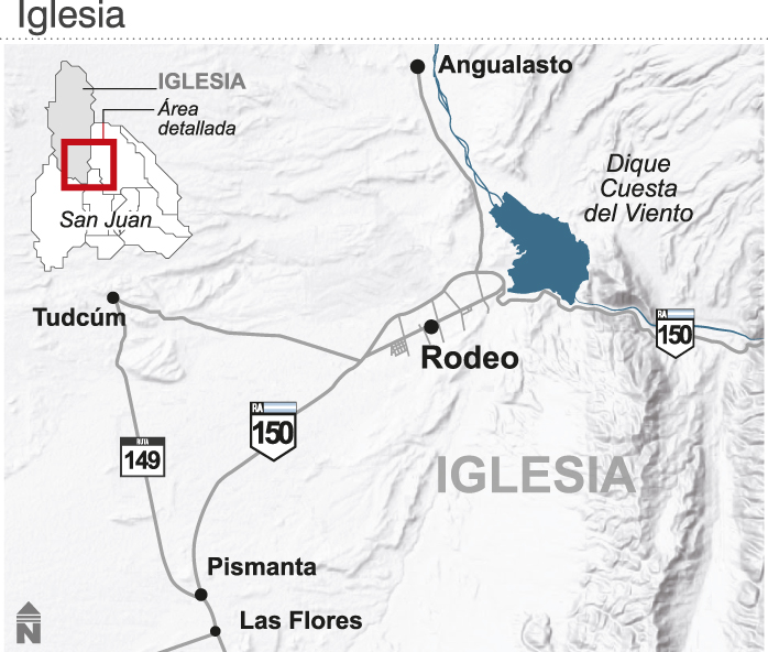 Ubicada sobre el río Jáchal, la Presa Cuesta del Viento constituye una importante obra hidroeléctrica de la región norte. La central regula los caudales de los arroyos y ríos iglesianos con el fin de producir energía e incrementar la producción agrícola y minera de la zona. La obra tiene la capacidad para generar 40 gigavatios por hora (GW/h) y asegura el riego de alrededor de 17.000 hectáreas. El Embalse Cuesta del Viento se ha convertido, en los últimos tiempos, en uno de los principales atractivos turísticos de San Juan. Sus cualidades naturales permiten catalogarlo como uno de los mejores sitios que existen en el mundo para la práctica del windsurf y kitesurf. El mountain-bike es otra de las actividades que gana terreno en la zona. El dique brinda distintas opciones para el descanso en los paradores y clubes de sus playas. Mientras que el Río Jáchal es escenario del rafting, una práctica deportiva muy solicitada por los visitantes.