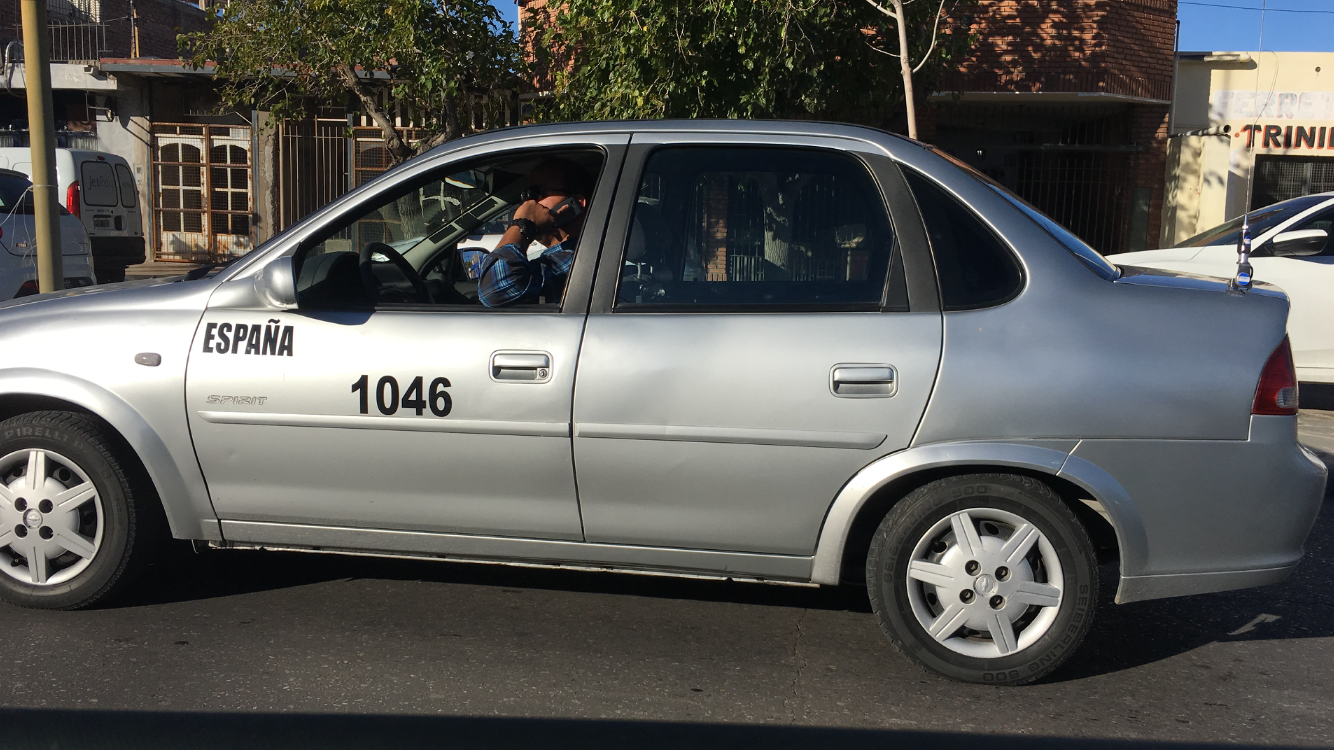 Un remisero hablando por celular y sin utilizar el cinturón. Una imagen que se repite.