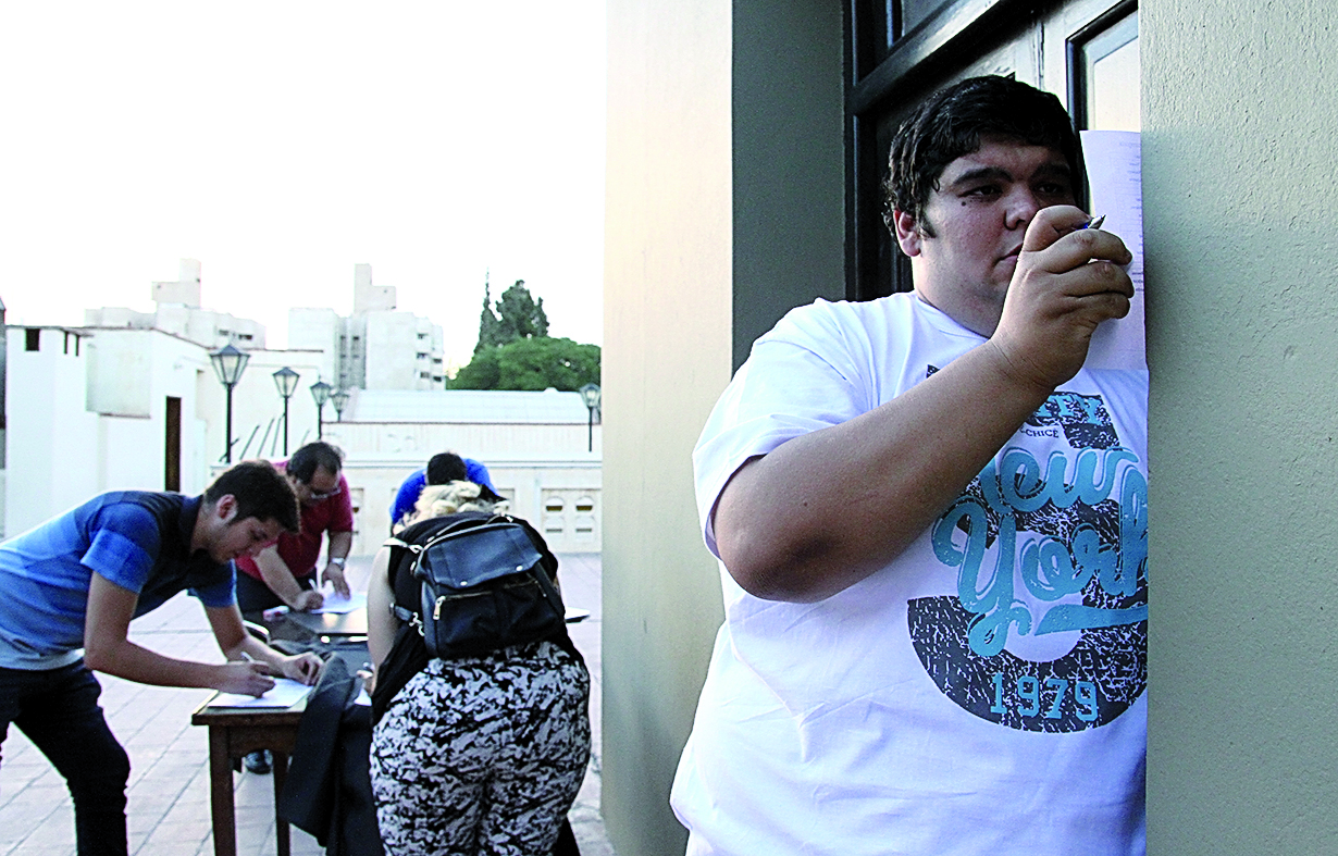 No importa el lugar. Los integrantes del jurado eligieron distintos lugares para votar. En la imagen, por ejemplo, hasta apoyándose en la pared o en las mesas de la terraza.