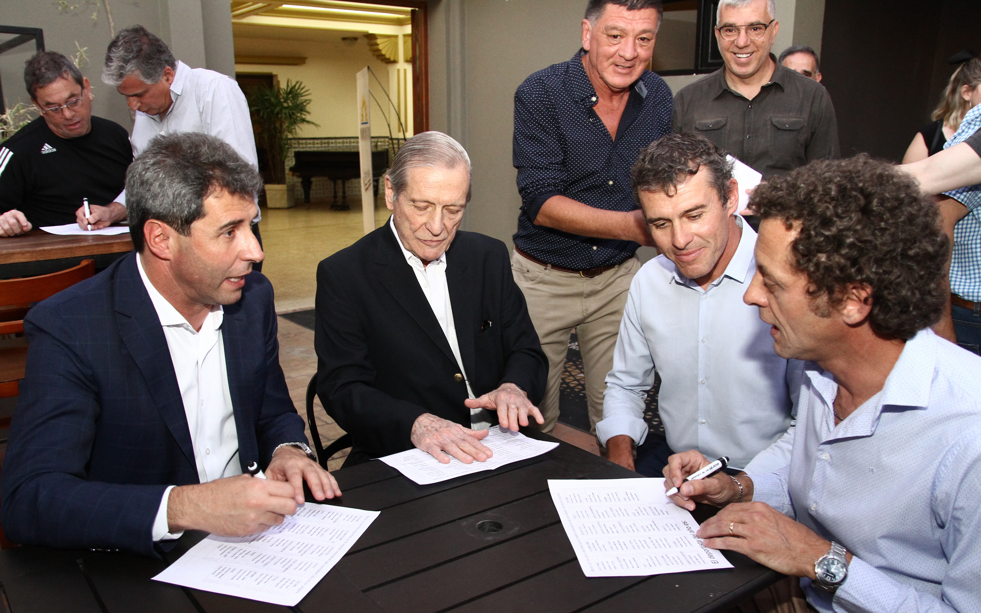 Emilio Baistrocchi (intendente de la Capital), Francisco B. Montes (director de DIARIO DE CUYO), Sergio Uñac (gobernador de San Juan), Walter Cavalli (editor de Deportes de DIARIO DE CUYO), Andrés Montes (director Comercial de DIARIO DE CUYO), Gustavo Platero (propietario del café "Tres Cumbres") y Jorge Chica (secretario de Deportes de la provincia).