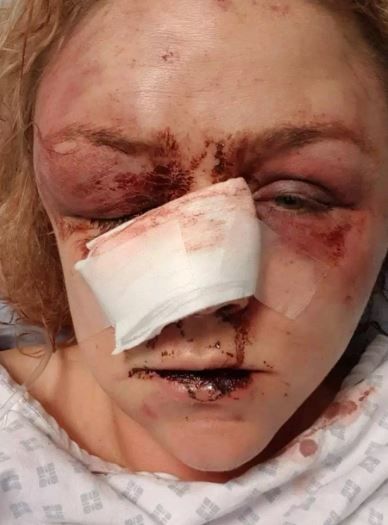 En consecuencia del violento ataque, la mujer quedó con la nariz rota y con las cuencas de sus ojos fracturadas. Además, su rostro quedó con graves moretones faciales. Los familiares de la víctima no la reconocieron al verla después del terrible episodio.