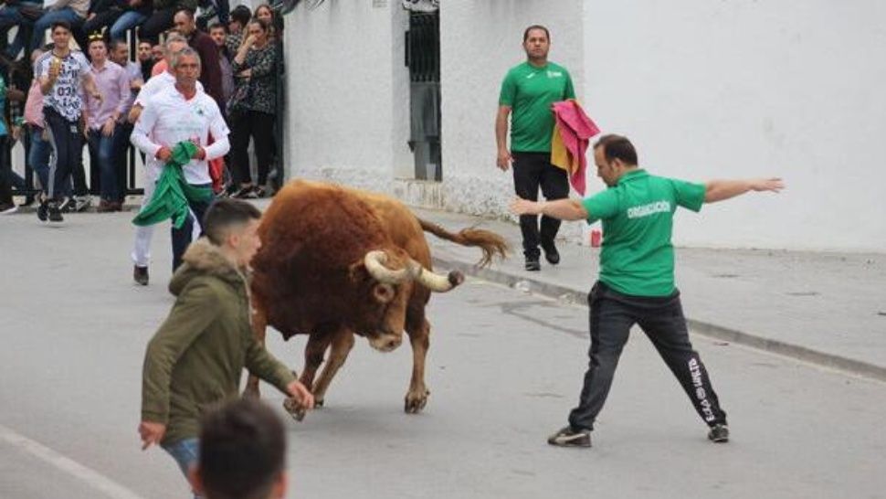 La celebración, conocida como " Toro Embolao de Vejer", consiste en liberar dos toros bravos en la calle en el último día de Semana Santa mientras la multitud huye de su paso.
