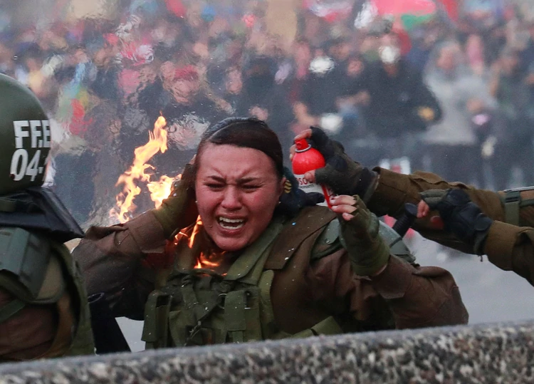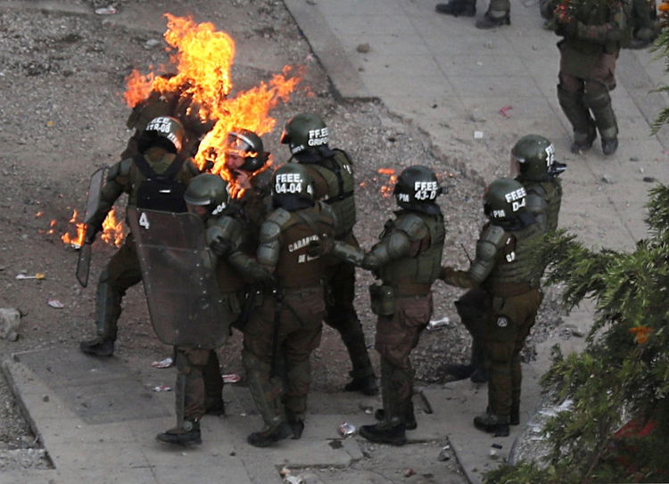 Dos carabineras atacadas este lunes con bombas molotov durante las protestas en Chile resultaron con quemaduras graves en sus rostros.