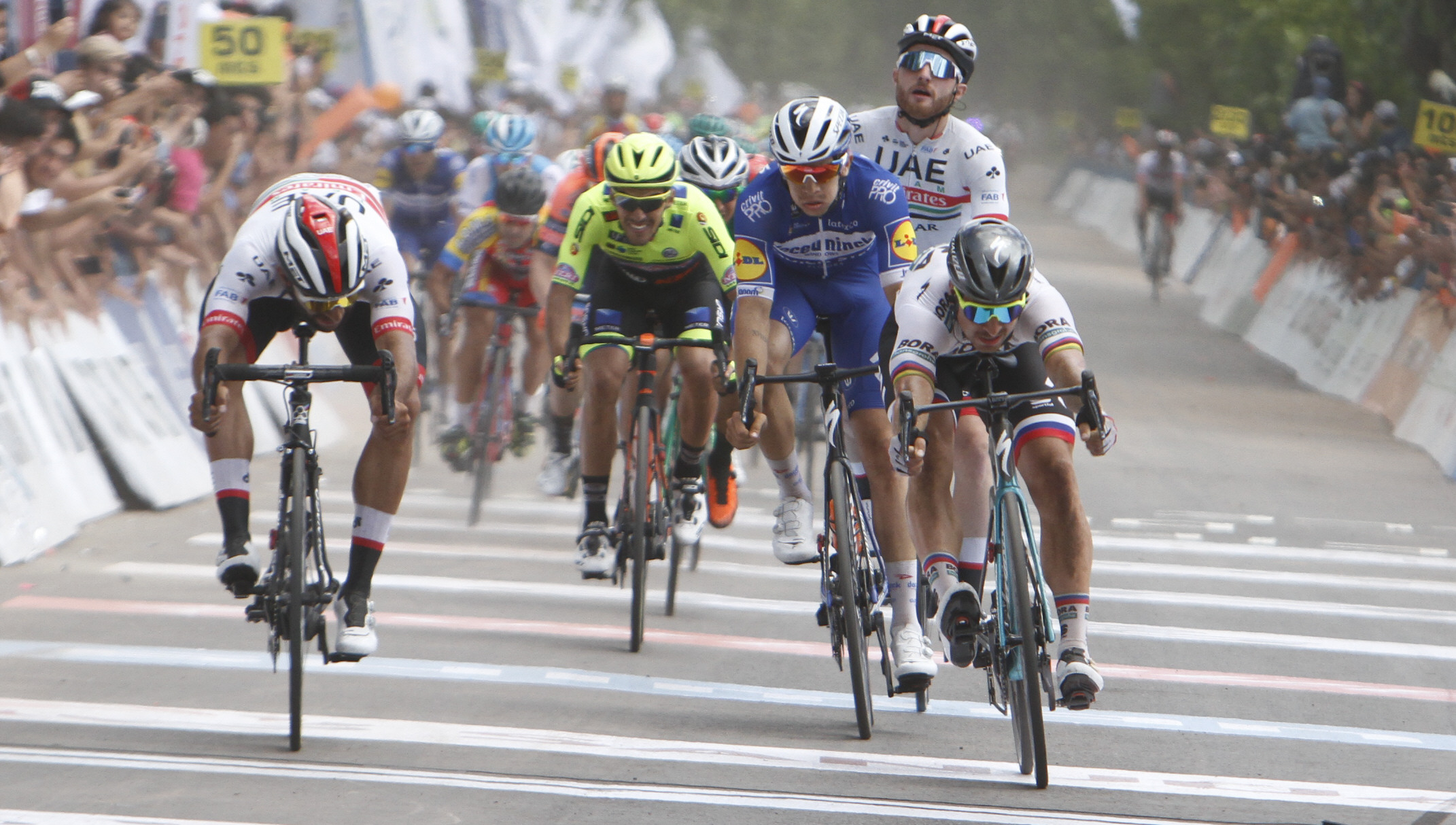 El Rey de la velocidad rindió a pleno en Valle Fértil y derrotó con autoridad a Peter Sagan que trató de sorprenderlo sobre la raya misma. Gaviria ganó y pide pista para la general.