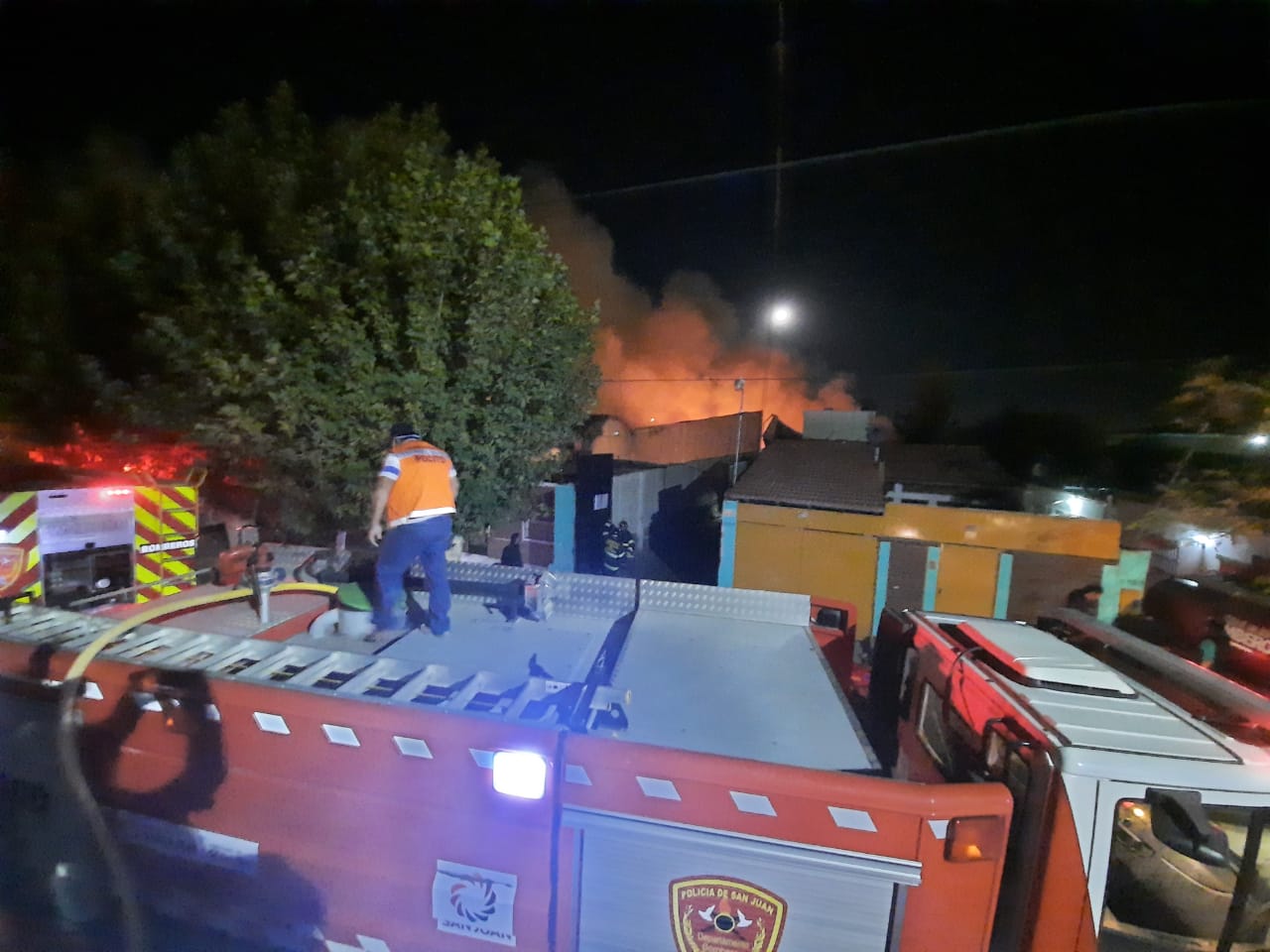 La columna de humo se veía desde kilómetros a la redonda al igual que el naranja furioso de las llamas que subían hasta unos 10 metros. En el lugar trabajaron dotaciones de Bomberos de la Policía de San Juan, los bomberos voluntarios de Chimbas, Pocito y Rawson, entre otros.