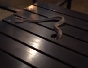 Una joven sanjuanina compartió en las redes sociales su sorpresa y espanto después de haber encontrado en un bar de Capital una víbora de  gran tamaño sobre la mesa.