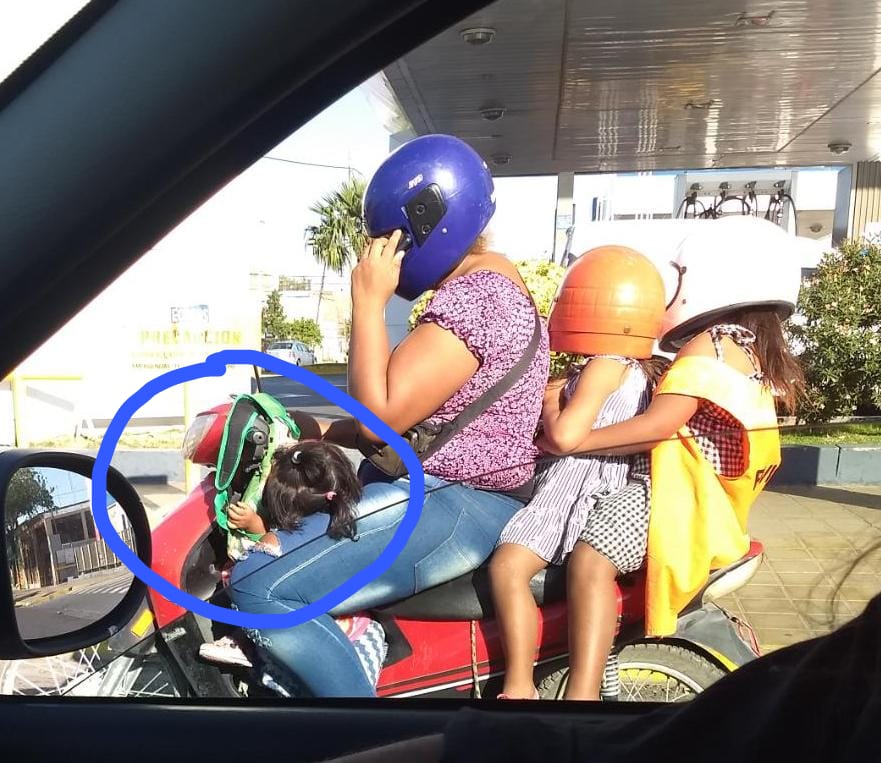 Un lector envió una imagen y el siguiente comentario: "Esta señora que lleva 3 niños, la de adelante en condiciones peligrosísimas, y además hablando por teléfono".
