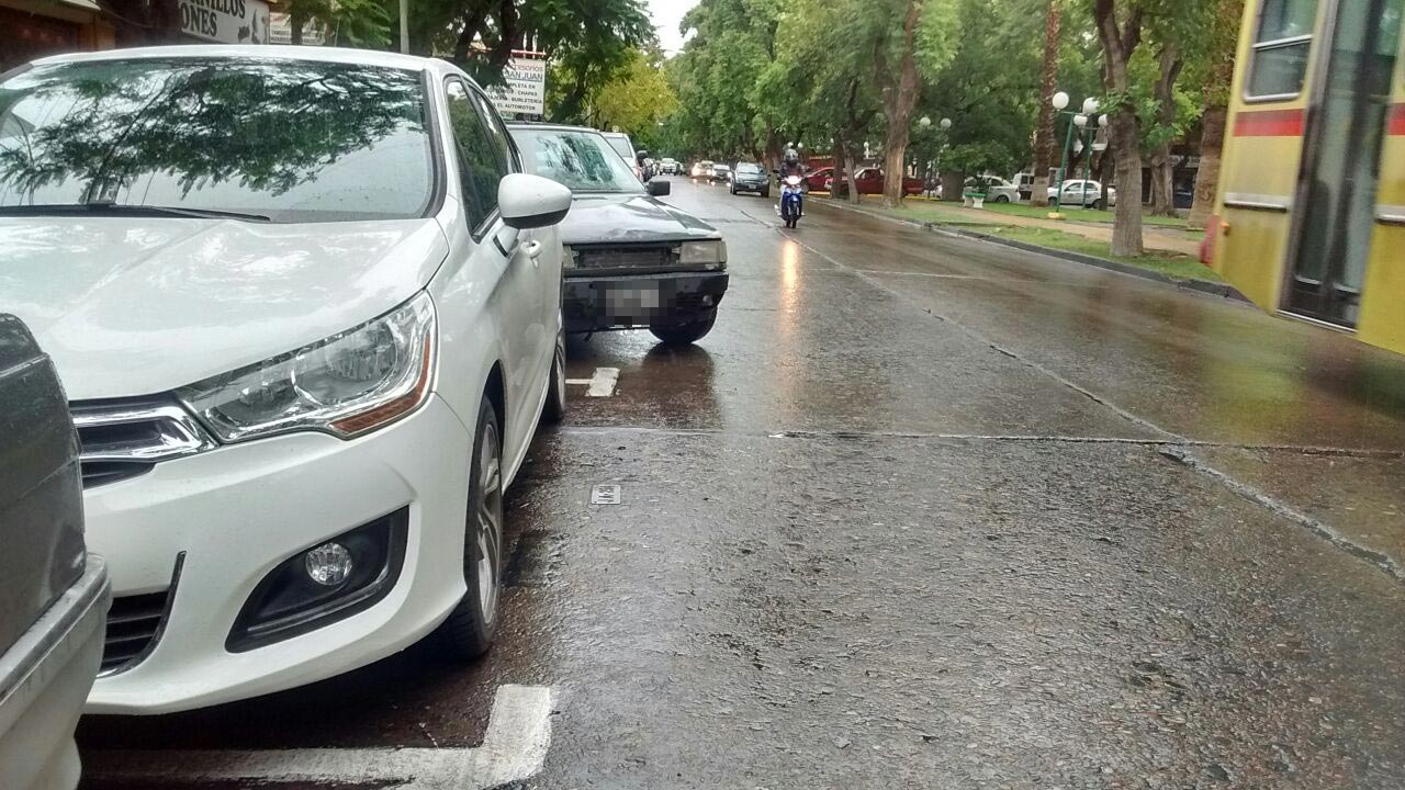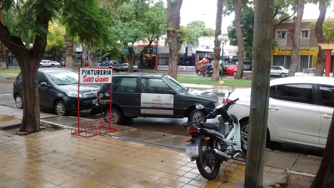 La imprudencia de la gente para estacionar. El auto sobre sale medio metro, ¿cómo lo va a dejar así? Esto fue en avenida Rawson antes de Libertador.