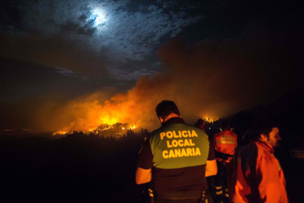 Un gran incendio forestal sin control, el tercero importante en una semana, quemó ya entre 1.500 y 1.700 hectáreas en el norte de la isla atlántica española de Gran Canaria y obligó a evacuar unas 4.000 personas de cuarenta núcleos de población. El fuego, "muy virulento", ha causado ya "un desastre" medioambiental y avanza hacia el pinar de Tamadaba, un bosque autóctono declarado Reserva de la Biosfera, según advirtió este domingo el presidente regional de las islas Canarias, Ángel Víctor Torres.