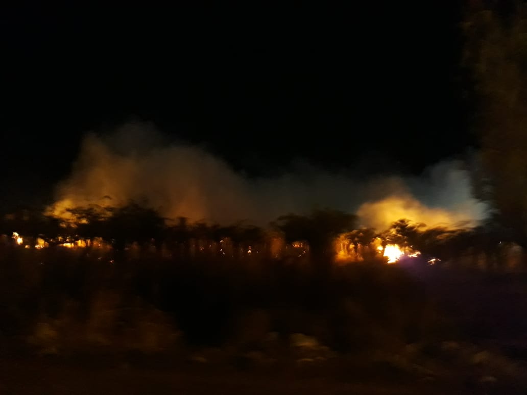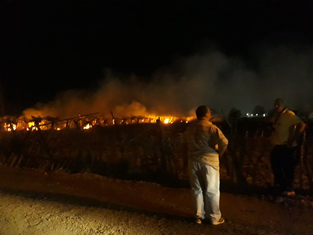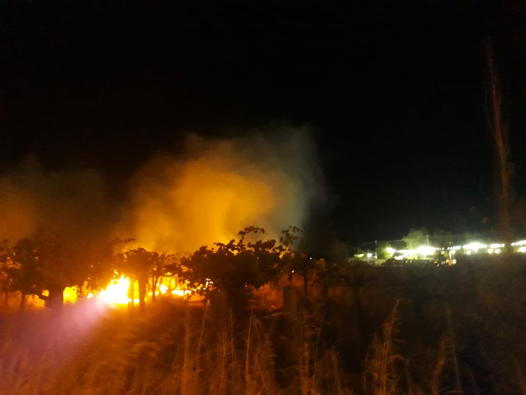 Las llamas alertaron a los vecinos de inmediaciones de calle Salta y Centenario, en Chimbas, y a cualquiera que de lejos veía las enormes columnas de humo. El siniestro se produjo este miércoles en la noche, después de las 20:30, en una finca con parrales.