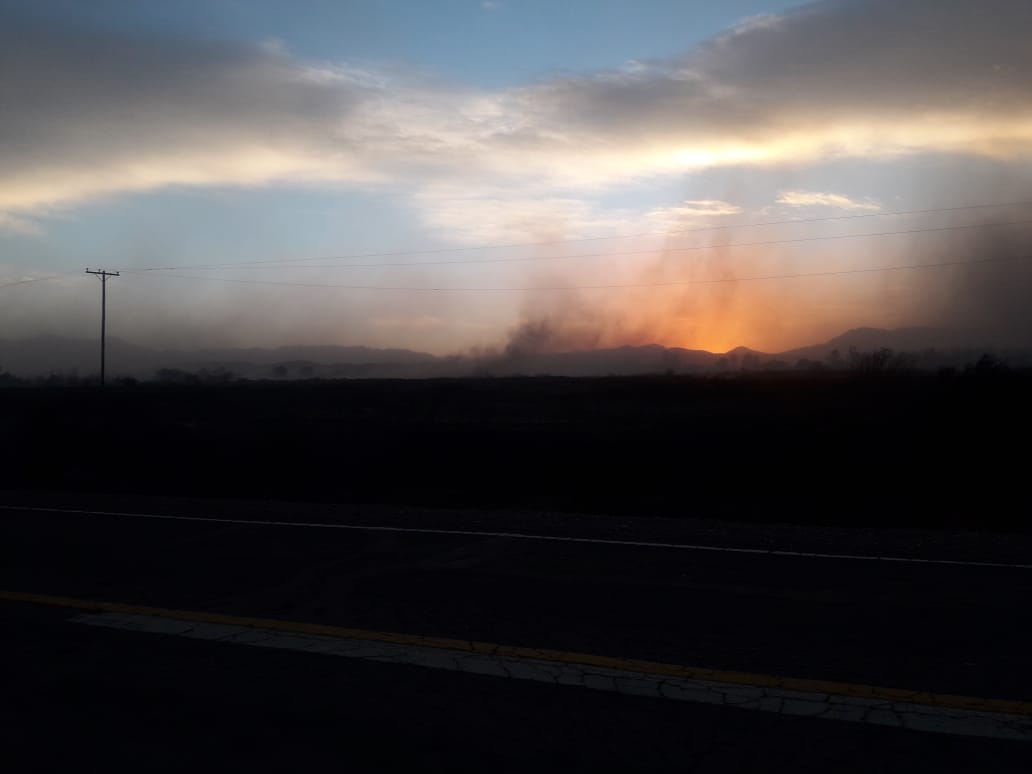 Otra situación problemática que están controlando Bomberos, policía departamental, escuadrón de Gendarmería y Protección Civil es el incendio que se originó en pastizales de la localidad de San Roque, ubicada a 12 kilómetros de la ciudad cabecera de Jáchal.