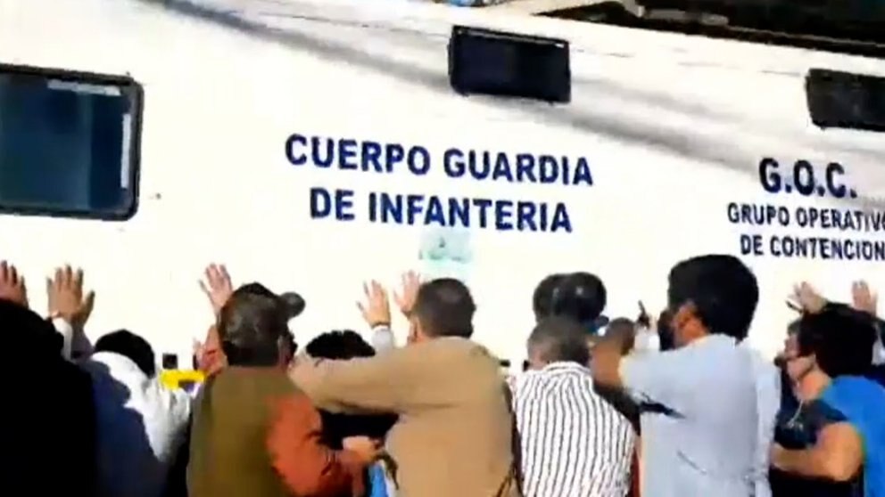 Parte de los manifestantes lograron sortear vallados y estuvieron a punto de derribar una camioneta de la Policía, que intenta restringir la circulación para garantizar la seguridad del jefe de Estado y del gobernador local, Juan Manzur.