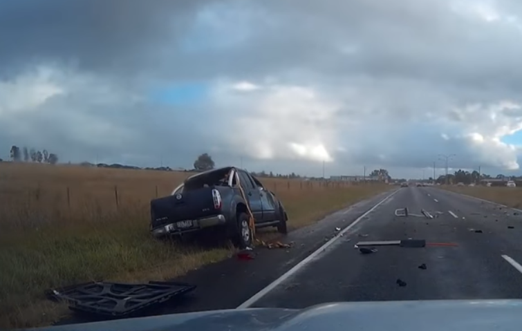Un conductor perdió el control de su pick up, se fue a la banquina y volcó con tanta fuerza que llegó a dar tres “vueltas de campana” mientras atravesaba la mano contraria. Sorprendentemente, salió caminando del vehículo. Ocurrió en la autopista Virginia, en Australia.