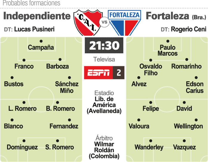 La única modificación sería en la defensa ya que volvería Alexander Barboza, recuperado de un problema cervical, en lugar del juvenil Sergio Barreto. El resto del equipo ante Fortaleza (terminó noveno en el torneo Brasileirao) sería el mismo que cayera ante Racing.