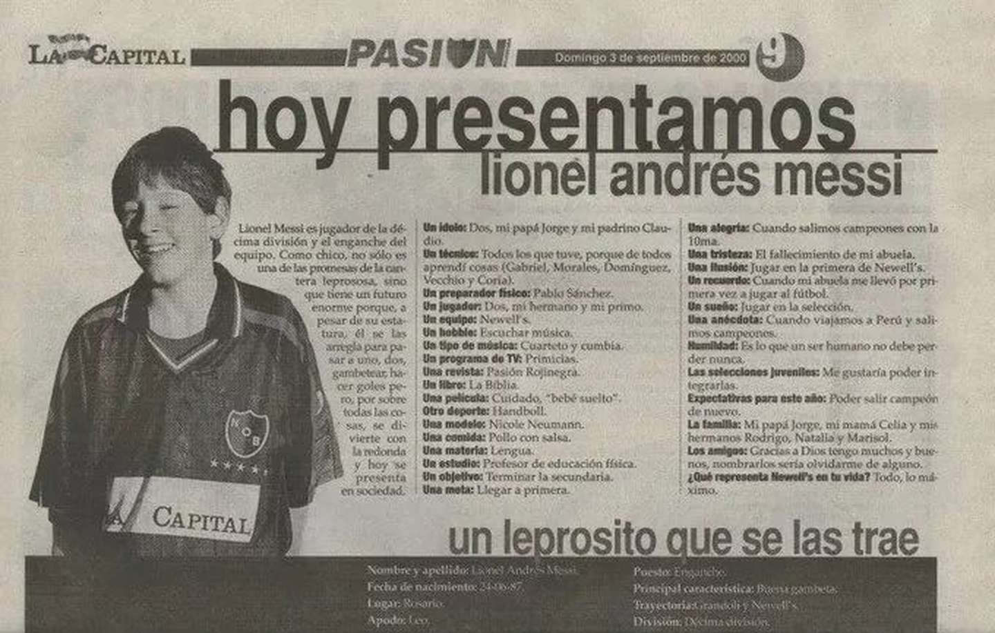 La primera entrevista a Lionel Messi en un diario