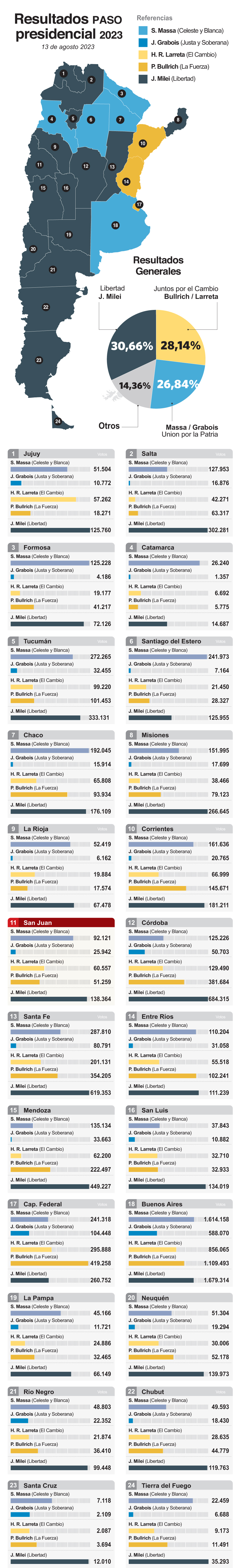 Diario de Cuyo | HOME | Noticias | Elecciones 2023 Infografía: cómo quedo pintado el país tras el golpe de efecto de Milei Por Redacción Diario de Cuyo 14/08/2023 · 0:00 Escuchar la noticia Escuchar la noticia Your browser doesn’t support HTML5 audio Elecciones 2023 Ver los comentarios ›
