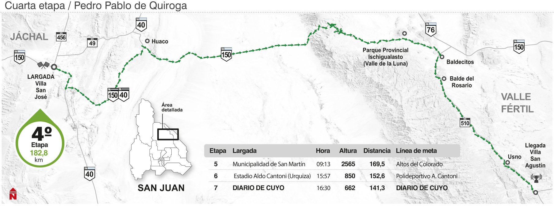Diario de Cuyo | HOME | Noticias | Cuarta Etapa Infografía Cuarta Etapa / Pedro Pablo de Quiroga Por Redacción Diario de Cuyo 23/01/2018 · 0:00 Escuchar la noticia Escuchar la noticia Your browser doesn’t support HTML5 audio Cuarta Etapa Vuelta a San Juan 2018 Ver los comentarios ›