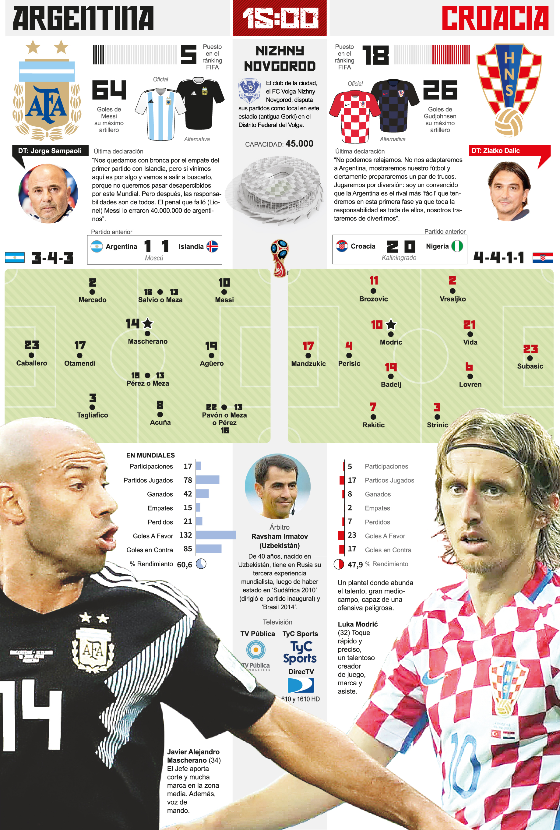 Diario de Cuyo | HOME | Noticias | Mundial de Rusia 2018 [Infografía] El detalle de las probables formaciones para Argentina -Croacia Por Redacción Diario de Cuyo 20/06/2018 · 0:00 Escuchar la noticia Escuchar la noticia Your browser doesn’t support HTML5 audio Mundial de Rusia 2018 Ver los comentarios ›