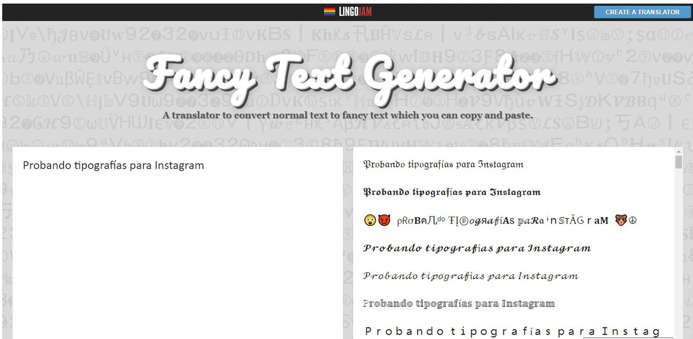 La clave de este “truco” súper sencillo es usar plataformas que ofrezcan tipografías compatibles con Instagram. Una de las opciones intuitivas y eficientes en LingoJam. Así deberás buscarlo en Google: es una página que se usa gratis y sin ninguna descarga.