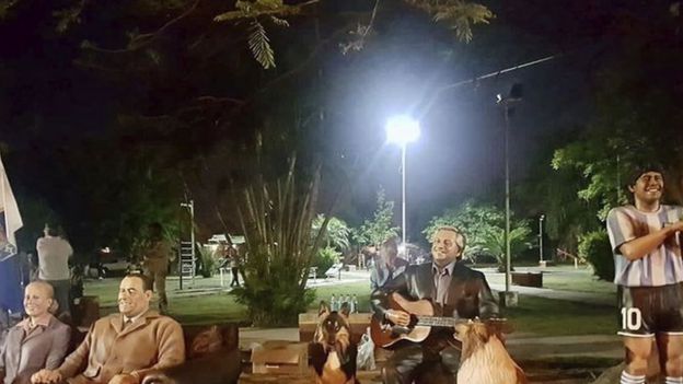 Instalaron una estatua de Alberto Fernández y Dylan en una plaza de Laguna Blanca, en Formosa, junto a las de Evita, Perón y Maradona. Los monumentos son parte de una muestra itinerante que los traslada de territorio en territorio.
