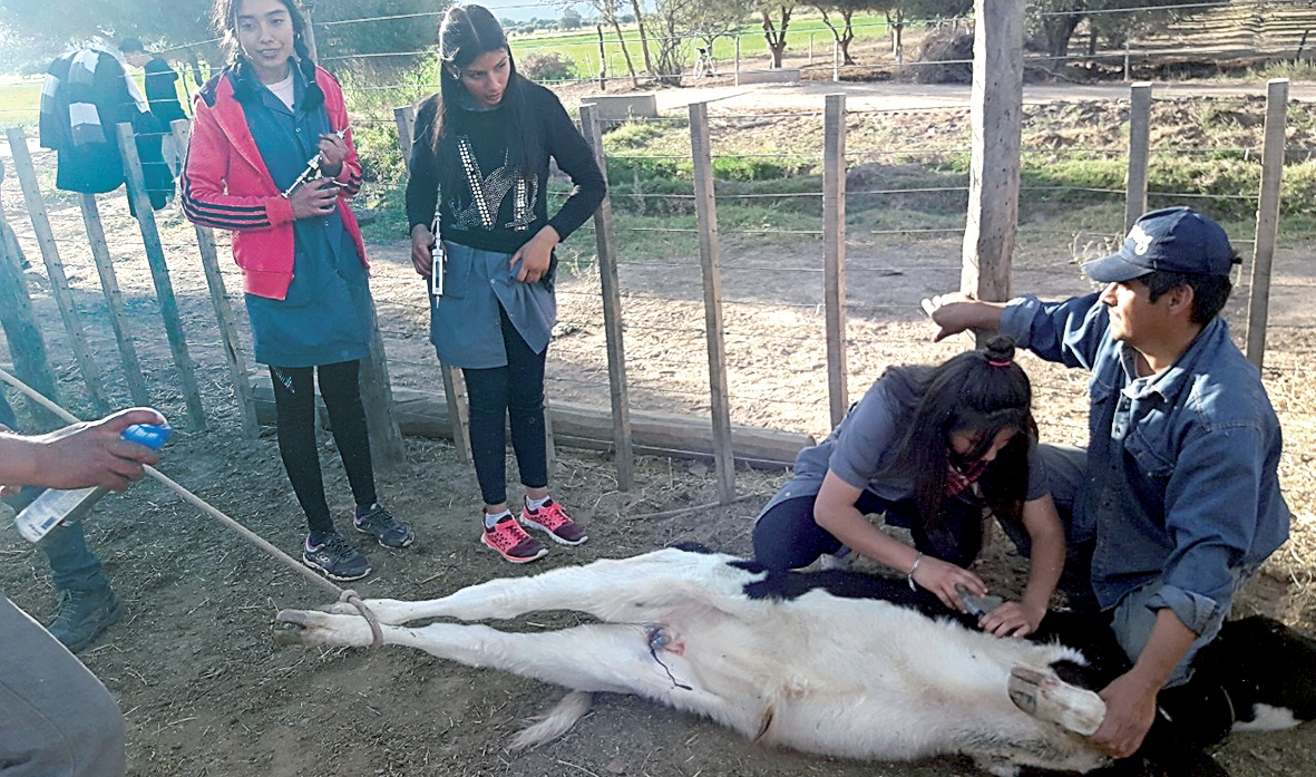 Alumnos de la escuela Agrotécnica de Huaco haciendo pasantías en este emprendimiento rural.