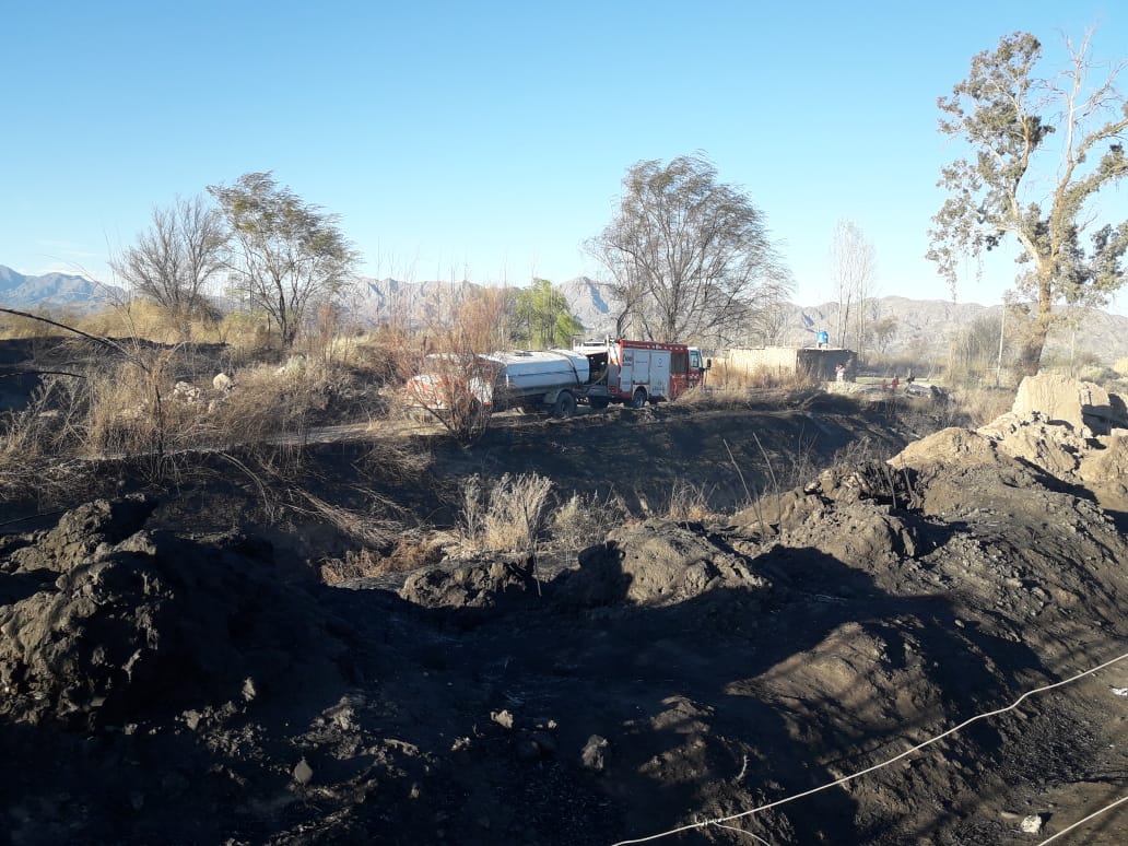 Los Bomberos y el personal de Defensa Civil tuvieron una intensa tarea ayer, en la zona norte de Jáchal, tras la llegada del viento Zonda. Es que, una finca se incendió y debieron trabajar rápido para evitar que el hecho pasara a mayores.