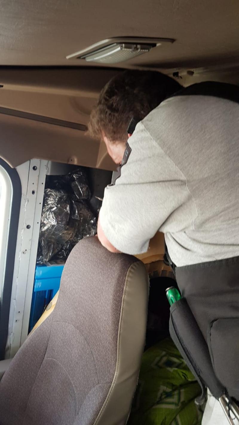 A partir de allí, se realizó un control físico del lugar y se descubrieron que en un pequeño hueco debajo del asiento del conductor había un centenar de cajas con teléfonos celulares nuevos.