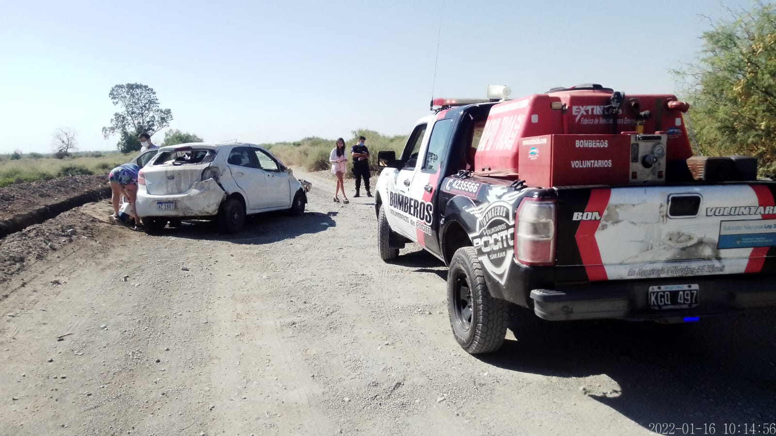 Según las fuentes, una mujer identificada como Ximena Marín, de unos 35 años, circulaba con una acompañante en un Ford Ka por Calle 17 al Este de Ruta 40. En un momento la conductora intentó esquivar un pozo, perdió el control del vehículo y volcó.
