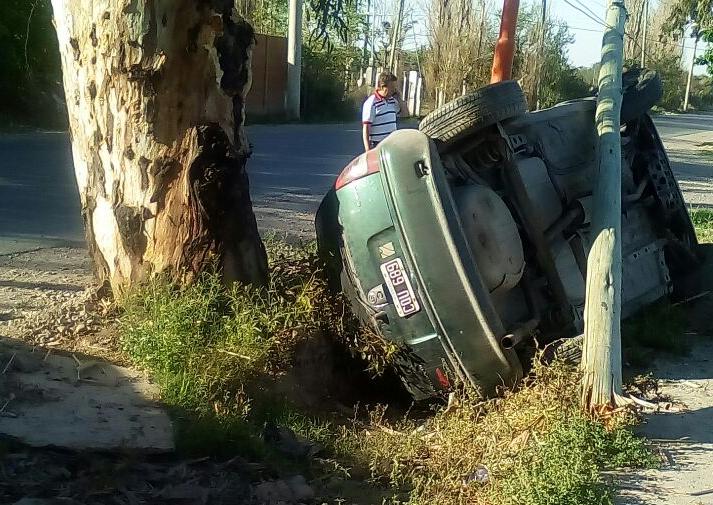 Un espectacular accidente se produjo en la mañana de este lunes en Rawson. Un automovilista chocó a otro y terminó dando varios tumbos e impactando contra un árbol y un poste de la luz.