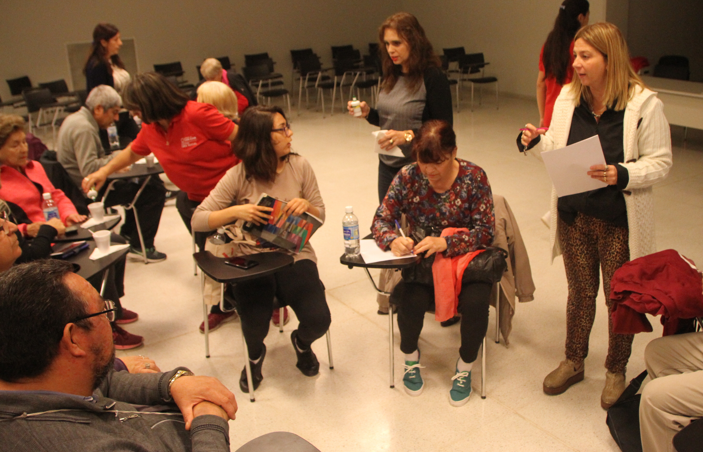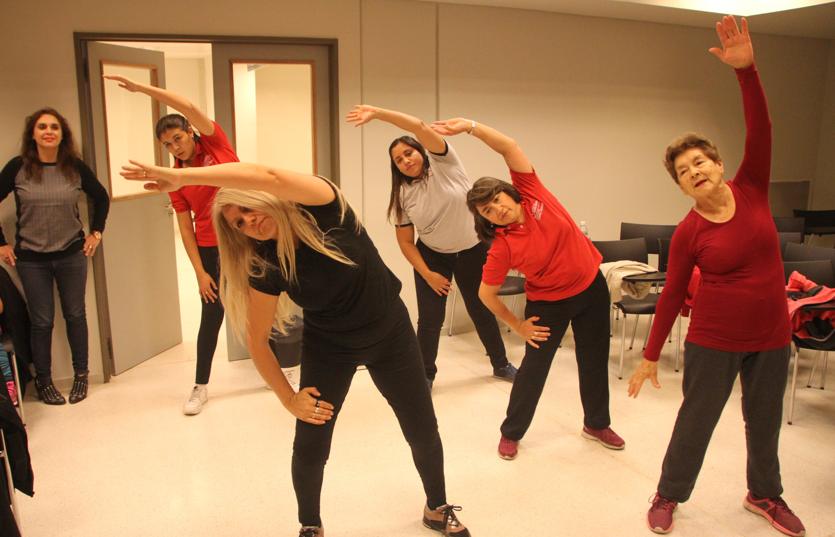 Si bien el taller de alimentación fue lo más extenso de la jornada, la clase de zumba y kick boxing también atrajo hasta a los más grandes. Incluso hubo personas que bailaron sentadas en las sillas. Y aunque algunos no estaban vestidos con la ropa adecuada para hacer gimnasia, y al principio sintieron un poco de vergüenza, todos se movieron sin parar y con mucha alegría.