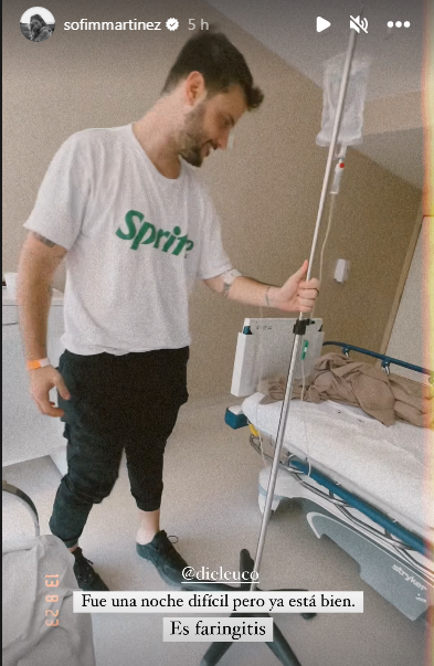 Este motivo hizo que Diego Leuco tuviera que pasar la noche internado. Sin embargo, tal como mostraron en sus respectivas redes sociales, ambos se tomaron la situación con tranquilidad. En una filmación que la pareja compartió en sus redes sociales, Sofía contó que su novio tiene faringitis y señaló: “Fue una noche difícil pero ya está bien”. De todas maneras, el periodista se mostró caminando por la habitación y detalló que recibió cuatro bolsas suero y otra de medicación.