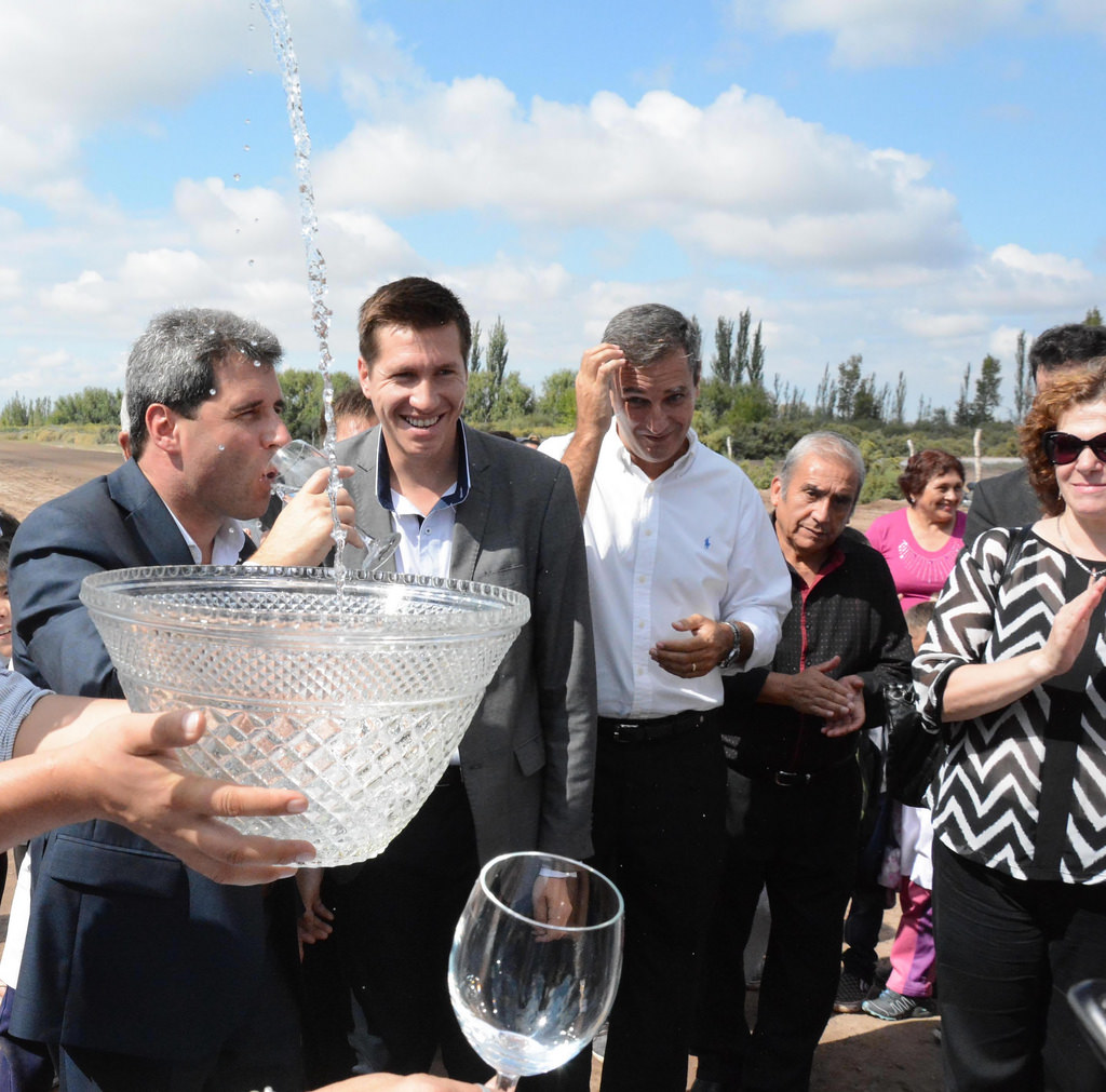 La visita del gobernador y su equipo a Sarmiento incluyó también la inauguración de 3.100 metros de conexión de red de agua potable que comprende las calles Bufano, 9 de Julio, Corrientes y Villagra en la localidad de Cochagual. El costo de la obra superó los $400.000 y corresponden a fondos municipales.