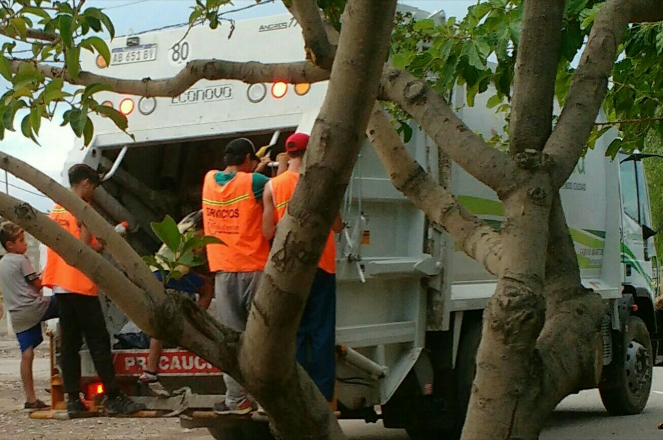 Un lector envió una imagen y el siguiente comentario: “Estos niños trepados al camión de basura y los trabajadores haciendo como si nada… así ocurren los accidentes”.