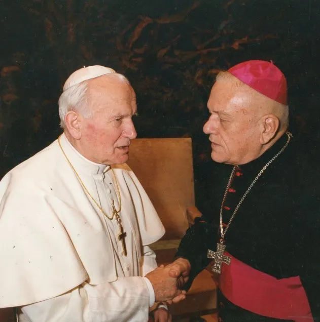 El arzobispo de San Juan de Cuyo, Ítalo Di Stéfano, con el Papa Juan Pablo II, hoy santo.¸·