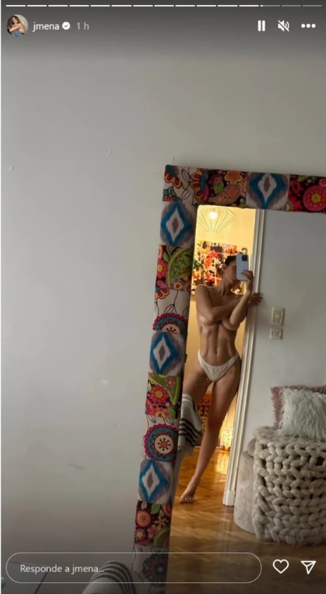 A minutos de haberse levantado, sin corpiño y en bombacha, Jimena Barón se sacó una sensual selfie de entrecasa en el espejo de su habitación.