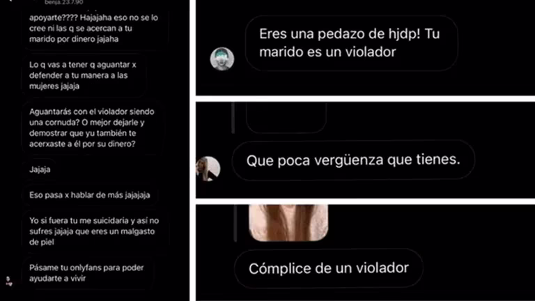 “¡Eres una hija de p…! Tu marido es un violador”, “Ahora saltas como la rata que eres del barco, que se está hundiendo, pero qué se puede esperar, que eres una p… cualquiera, te sacaron de la prostitución, perra de lo más bajo que eres” o “Yo si fuera tú, me suicidaría y así no sufres, jajaja, que eres un malgasto de piel”, fueron algunos de ellos.