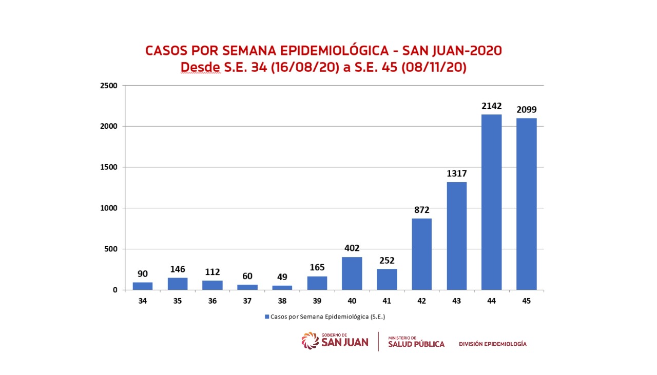 Y en ese sentido, remarcó que "aquí también se puede observar una meseta, incluso con disminución, ya que, en la semana 44 tuvimos 2.142 casos y en la 45, 2.099".