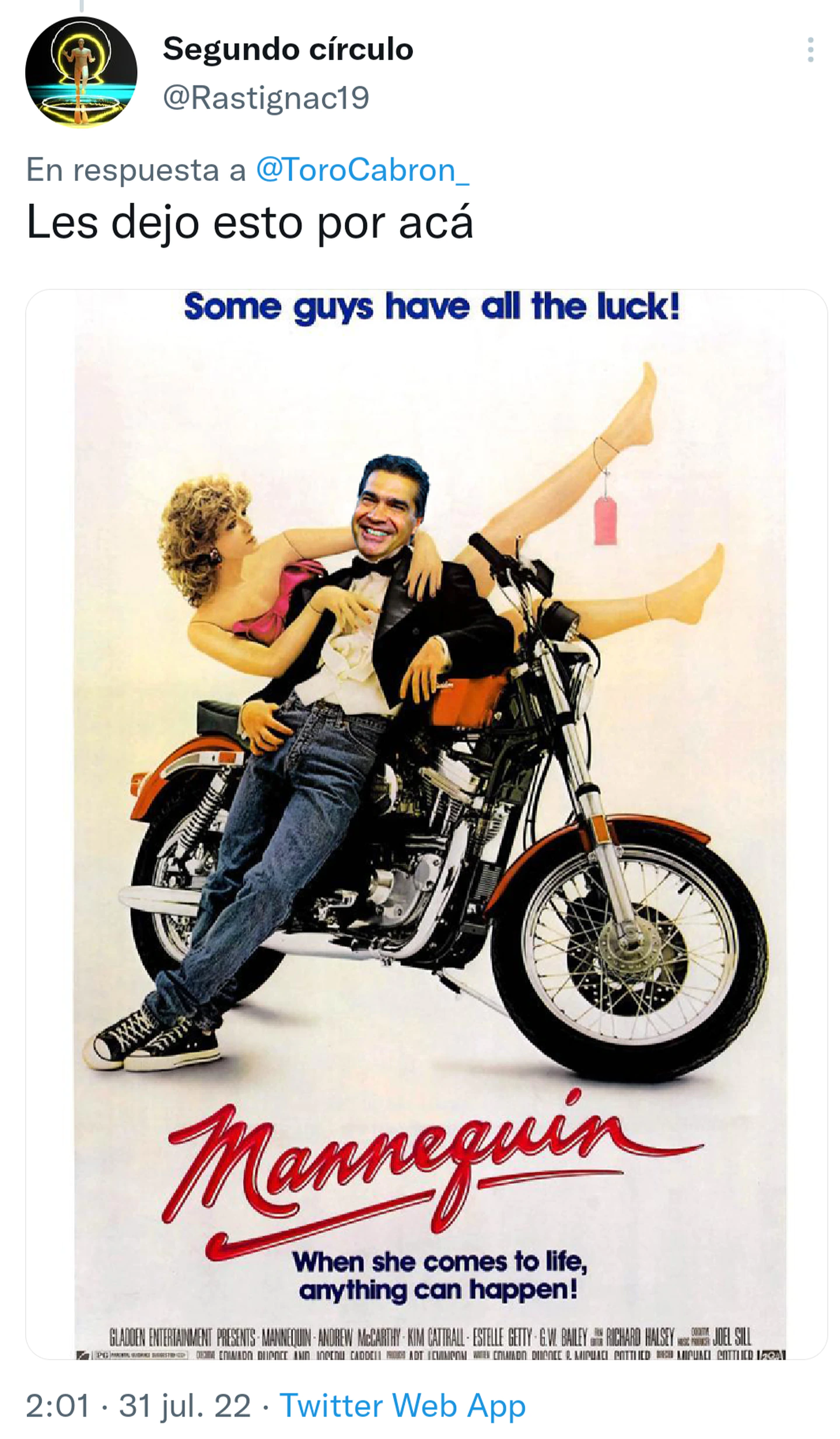 “Capitanich la venía populeando como un campeón y besó la cabeza de un maniquí creyendo que era una persona real”, escribió el tuitero en la descripción del posteo.