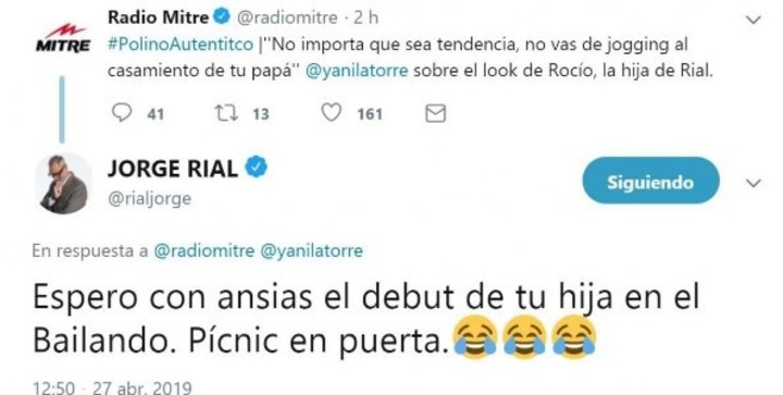Un comentario de Yanina Latorre en el programa radial "Polino auténtico" despertó el enojo de Jorge Rial, quien reaccionó y le respondió a través de Twitter. ¿Cuál fue el origen de la cuestión? La crítica de la panelista al look que utilizó Rocío Rial, hija menor del periodista, en el casamiento de su padre…