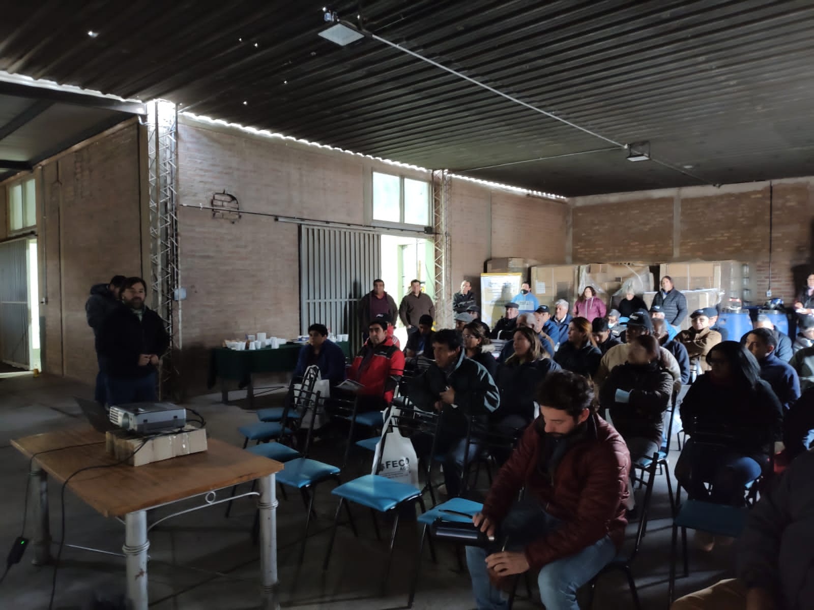 Karina Torrente, ingeniera agrónoma de la entidad, indicó a Suplemento Verde que "en esta fría mañana nos juntamos para ver la implementación de tecnologías para aprovechar mejor el agua de riego, mediante el uso de mangas, ya que casi el total de los productores de nuestras cooperativas riegan de manera tradicional, es decir superficial. Estamos viviendo una sequía histórica, y hay que ajustar al máximo el gasto de agua en los cultivos".