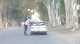 “Hoy –por este miércoles-, a eso de las 18.45 en el departamento de Ullum, tres jóvenes circulaban por calle Proyectada en un auto Gol gris. Dos de ellos, andaban en patineta tal cual se ve en la foto. Veníamos muchos detrás de ellos esperando porque uno los iba a pasar y el auto con los jóvenes se corría hacia el medio de la calle, un verdadero peligro ignorando el peligro que corrían.