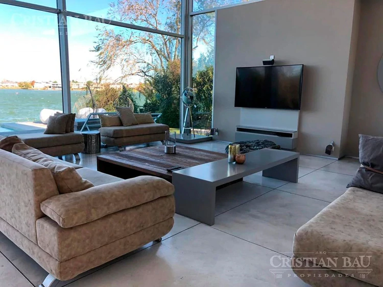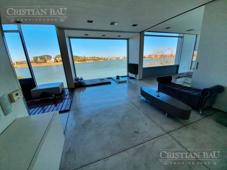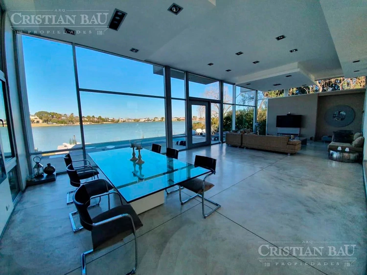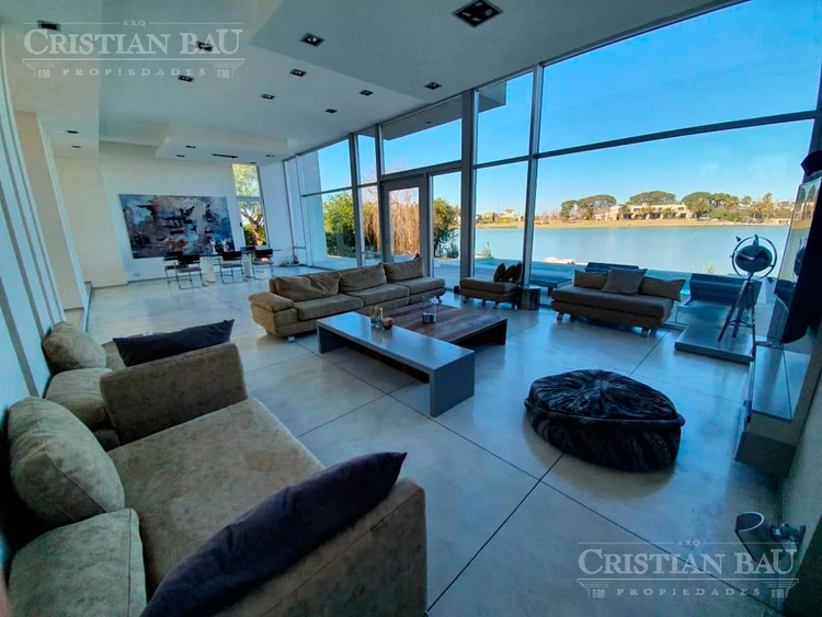 La planta baja es un gran espacio abierto. El living amplio tiene varios sillones y da al lago, y hacia un costado el comedor, donde entra una extensa mesa. Dicho ambiente está conectado con la cocina, que solo se divide a través de una barra. Justamente fue en esa barra donde antes de irse a Brasil el actor dio una entrevista a Mauro Viale. La casa cuenta con un amplio jardín, dos cocheras cubiertas, piscina con borde infinito, canchas de tenis y de fútbol, parrilla y muelle. Además de lavadero y dependencias de servicio.