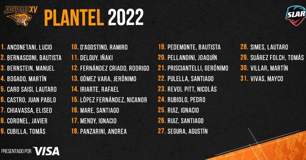 Concluidas las tres semanas de pretemporada, el Head Coach de Jaguares XV, Ignacio Fernández Lobbe, definió el plantel de 31 jugadores que defenderá el título en la Superliga Americana de Rugby 2022, que comenzará el próximo 13 de marzo.