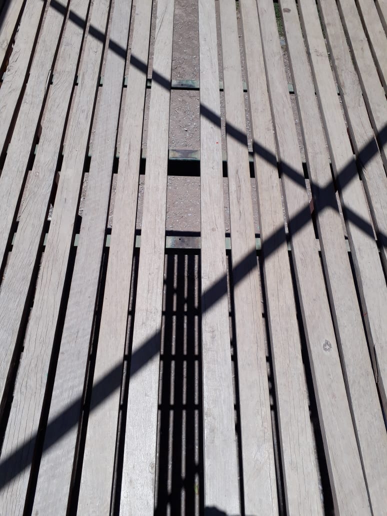 Un lector envió una imagen y el siguiente comentario: "Juegos peligrosos con una altura superior al 1.50 mts donde faltan maderas en plaza de Pocito frente a la Municipalidad".