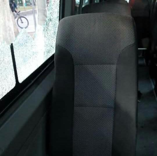 La combi detuvo su marcha en la Plaza de Desamparados y una ambulancia tuvo que asistir a los integrantes del plantel tricolor que sufrieron cortes.