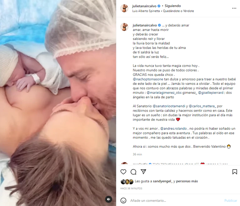 Andrés Rolando es el padre de la criatura y, al igual que Julieta Nair Calvo, se mostraba en sus redes sociales muy ansioso porque llegue el esperado día. Ninguno de los integrantes de la pareja publicaron la llegada de su hijo, por lo que prefirieron que quede en la intimidad de los ahora tres.